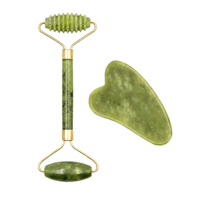 Rouleau de Massage Visage en Pierre de Jade Verte avec Gua Sha